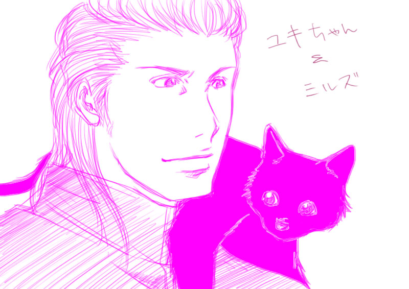 ユキちゃん(©あぶちゃん)と源ちゃん家の飼い猫ミルズ